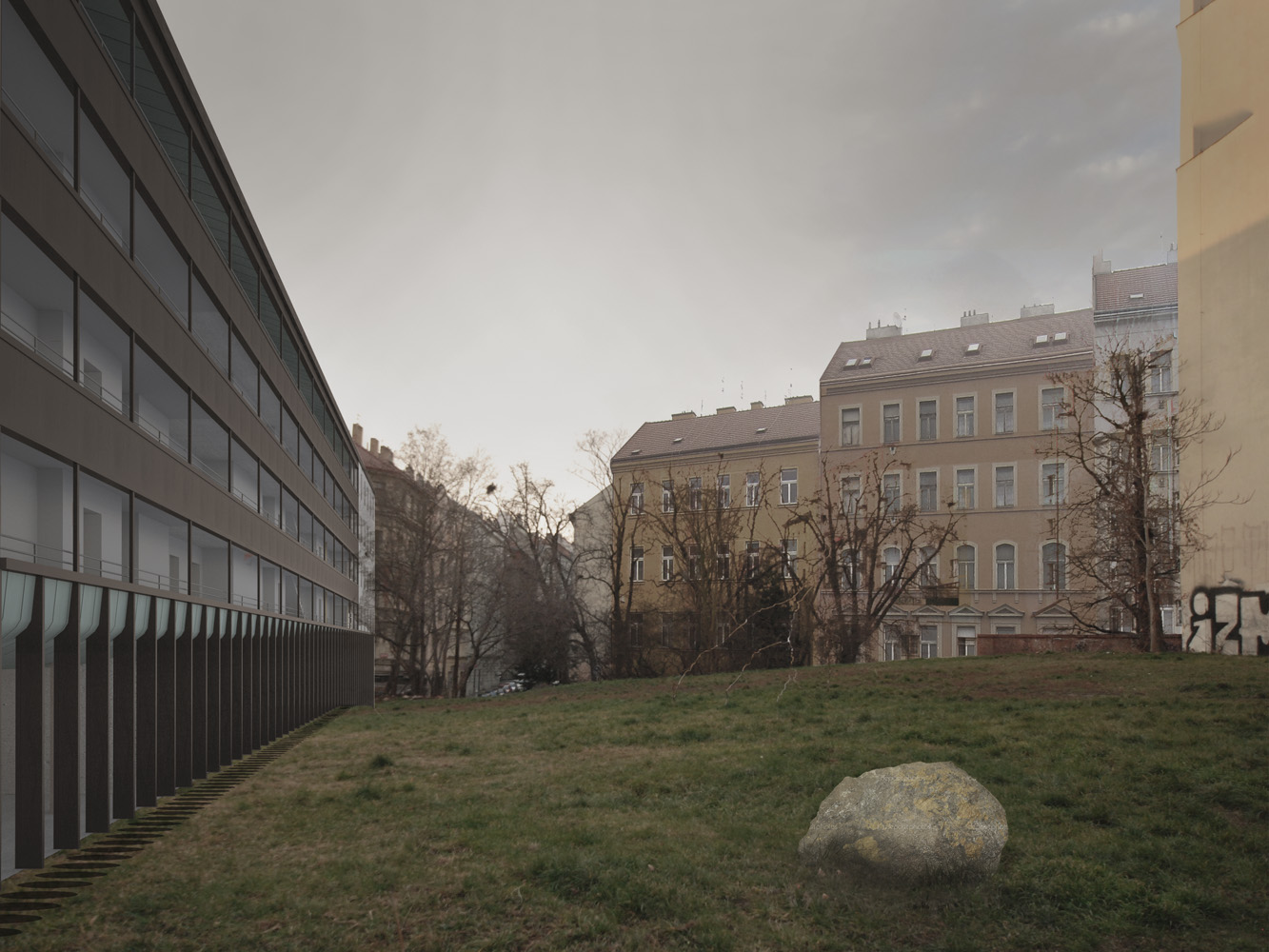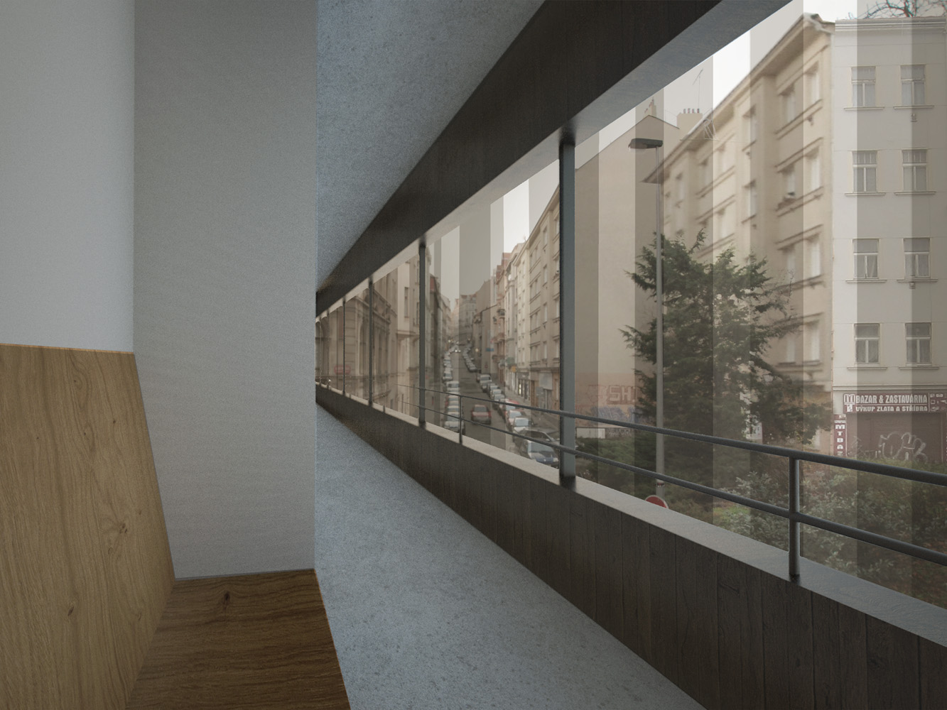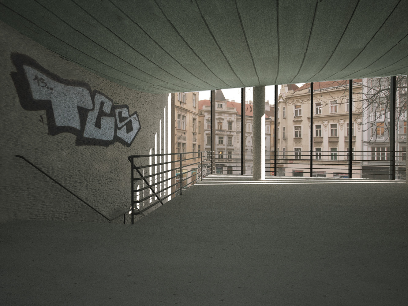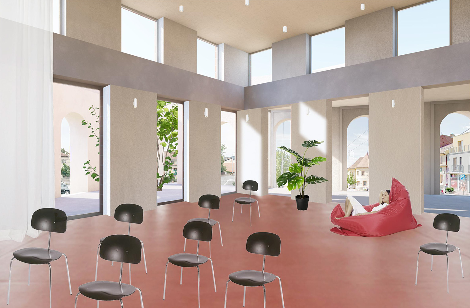 Dům, který je celý mým domovem. Jakou obecnější ambici by měl mít starobinec? Čemu se ale podobá domov více než šedesáti lidských bytostí. Klíčem je analogizovat důvěrně známé součásti domova. Přenést ideu předsíně, pokoje, obýváku… Dbát na zachování jejich smyslu, jejich vzájemných vztahů. Reinterpretovat fenomén hloubky domova a vyvážit tak pocit bezpečí a kontakt s vnějškem.