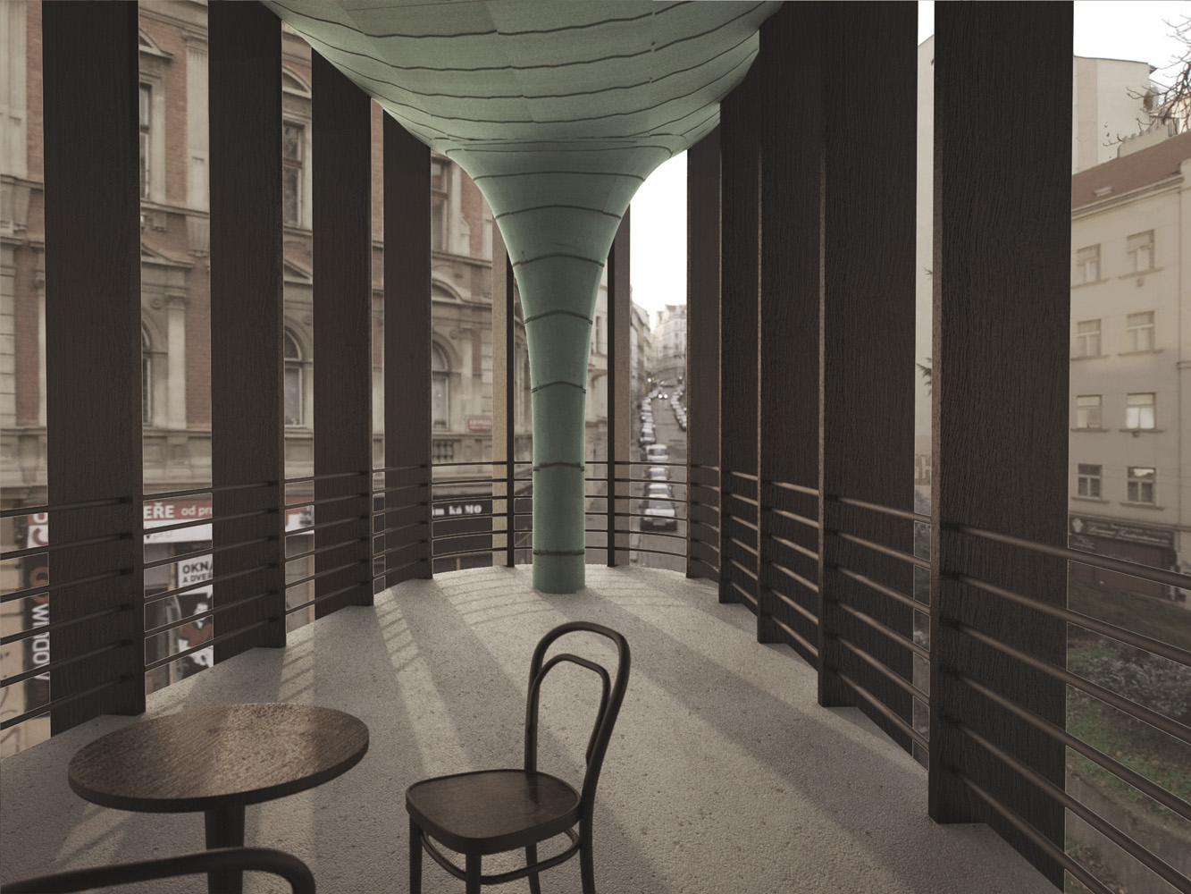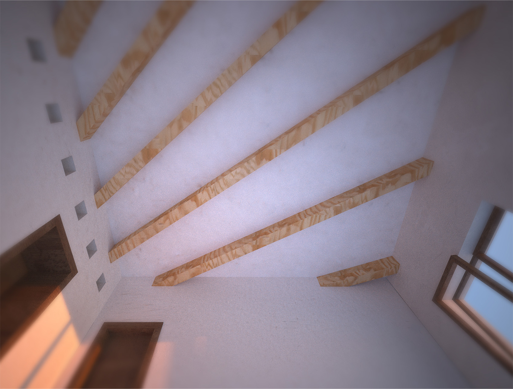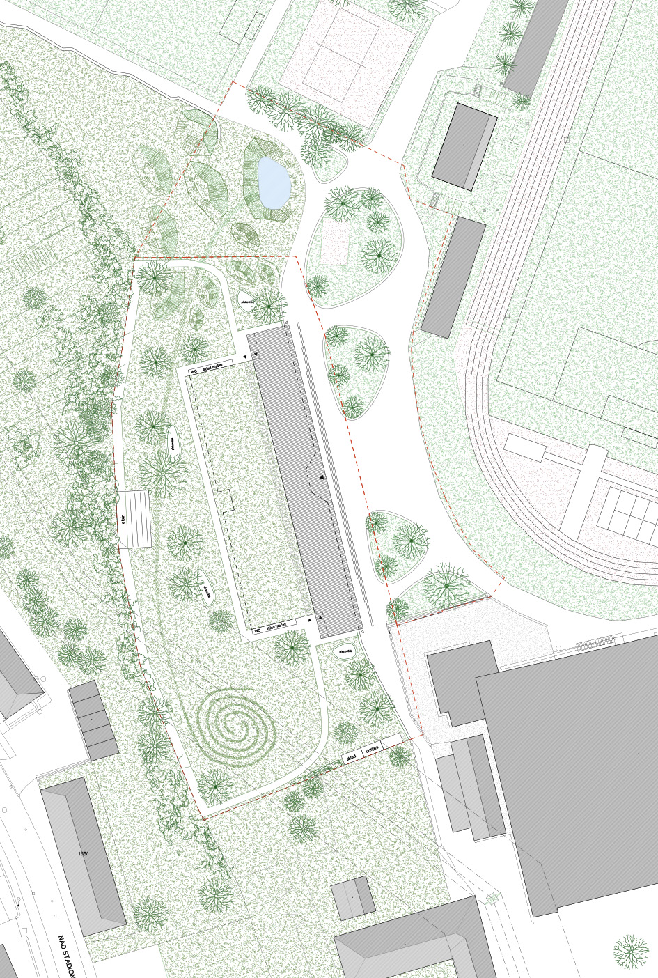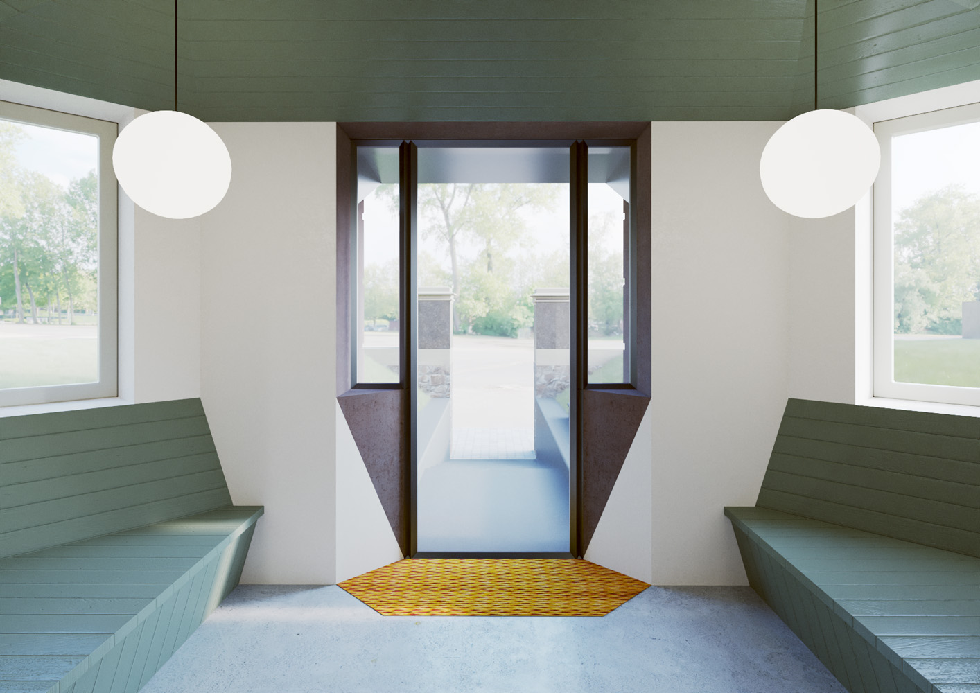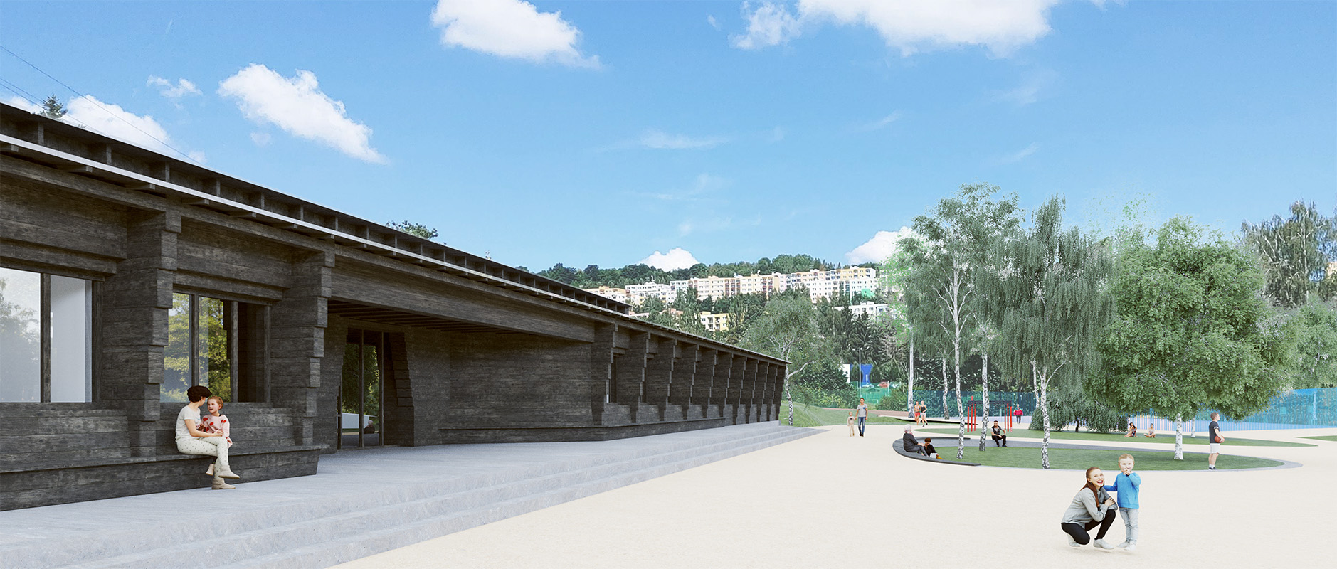 Dům, který je celý mým domovem. Jakou obecnější ambici by měl mít starobinec? Čemu se ale podobá domov více než šedesáti lidských bytostí. Klíčem je analogizovat důvěrně známé součásti domova. Přenést ideu předsíně, pokoje, obýváku… Dbát na zachování jejich smyslu, jejich vzájemných vztahů. Reinterpretovat fenomén hloubky domova a vyvážit tak pocit bezpečí a kontakt s vnějškem.