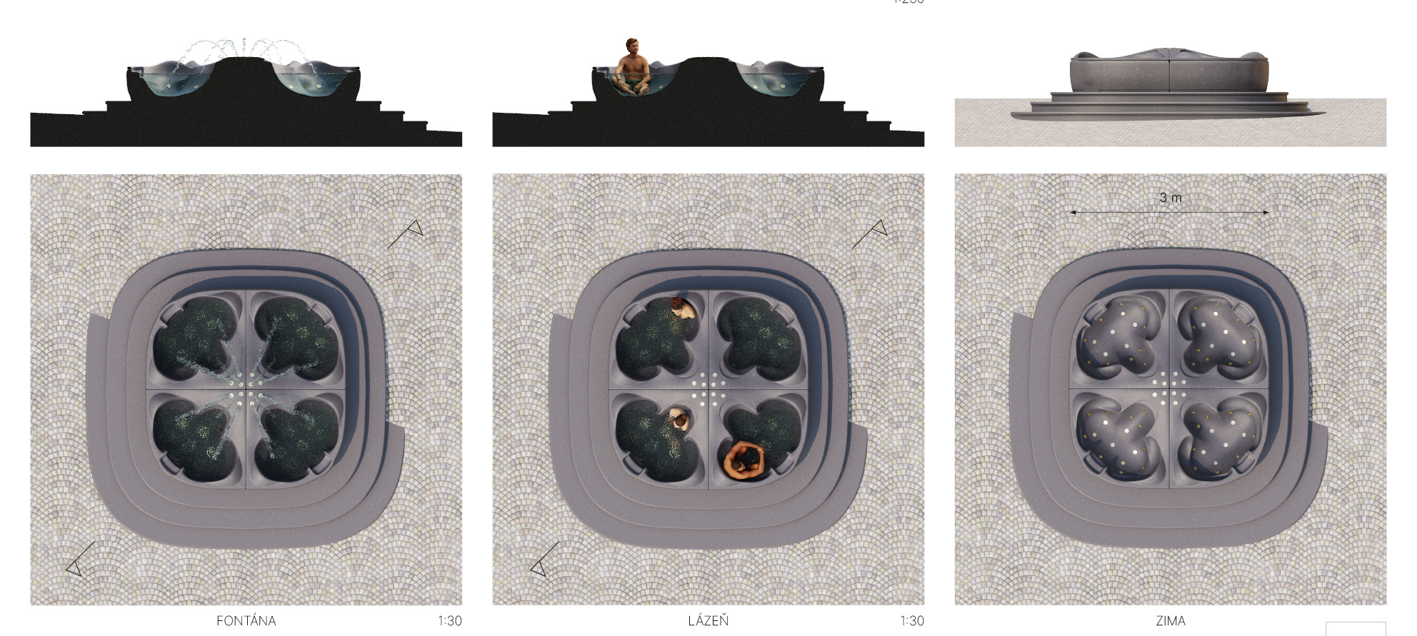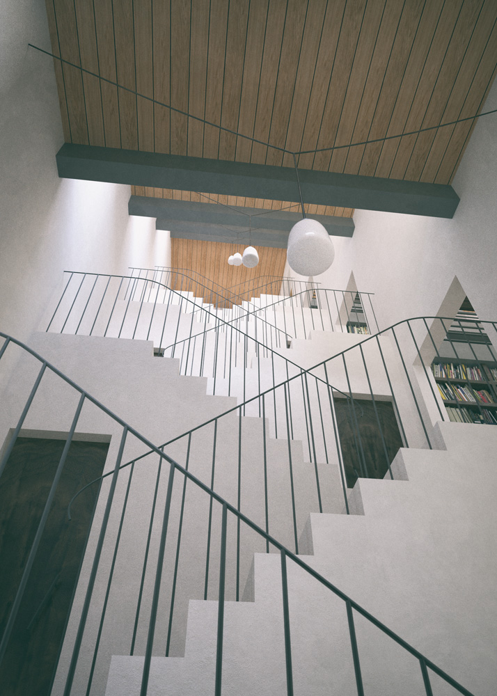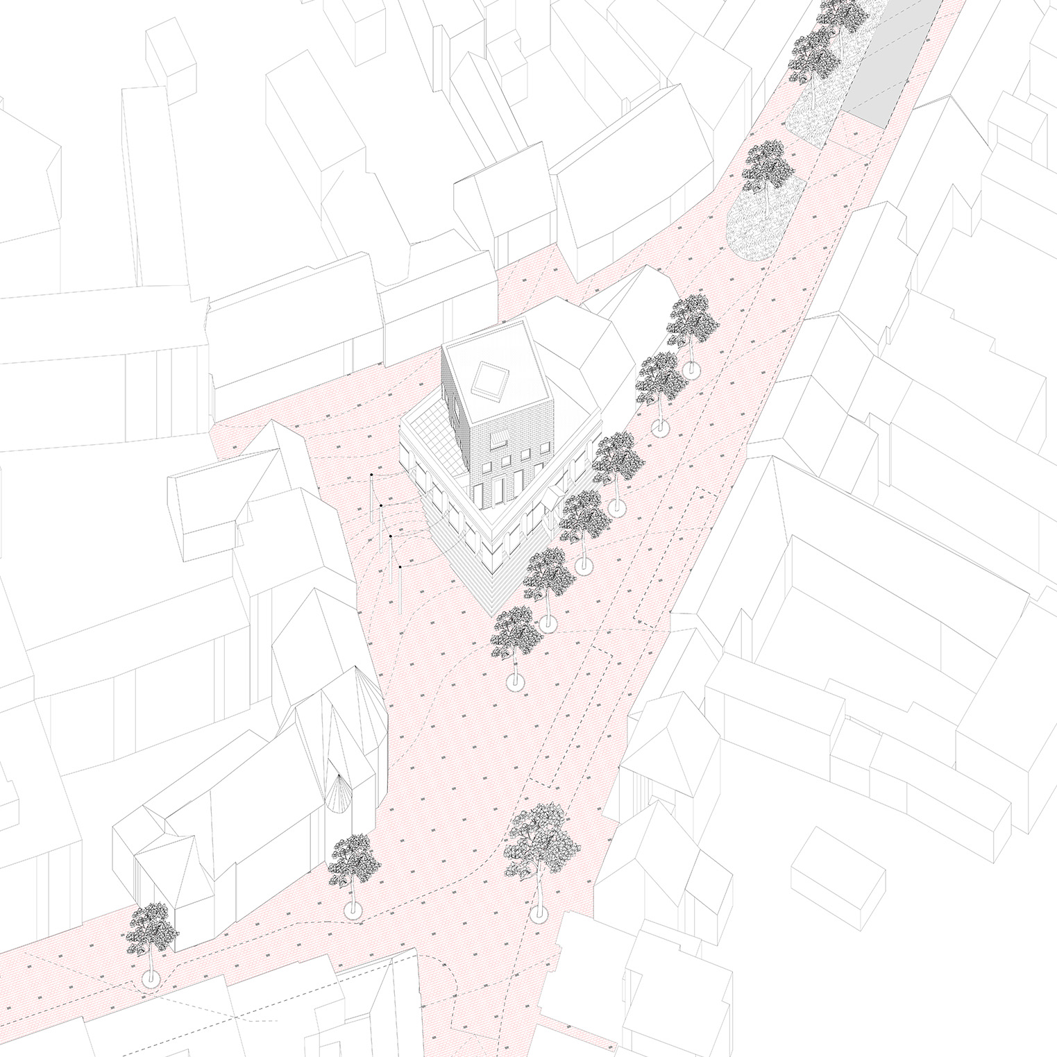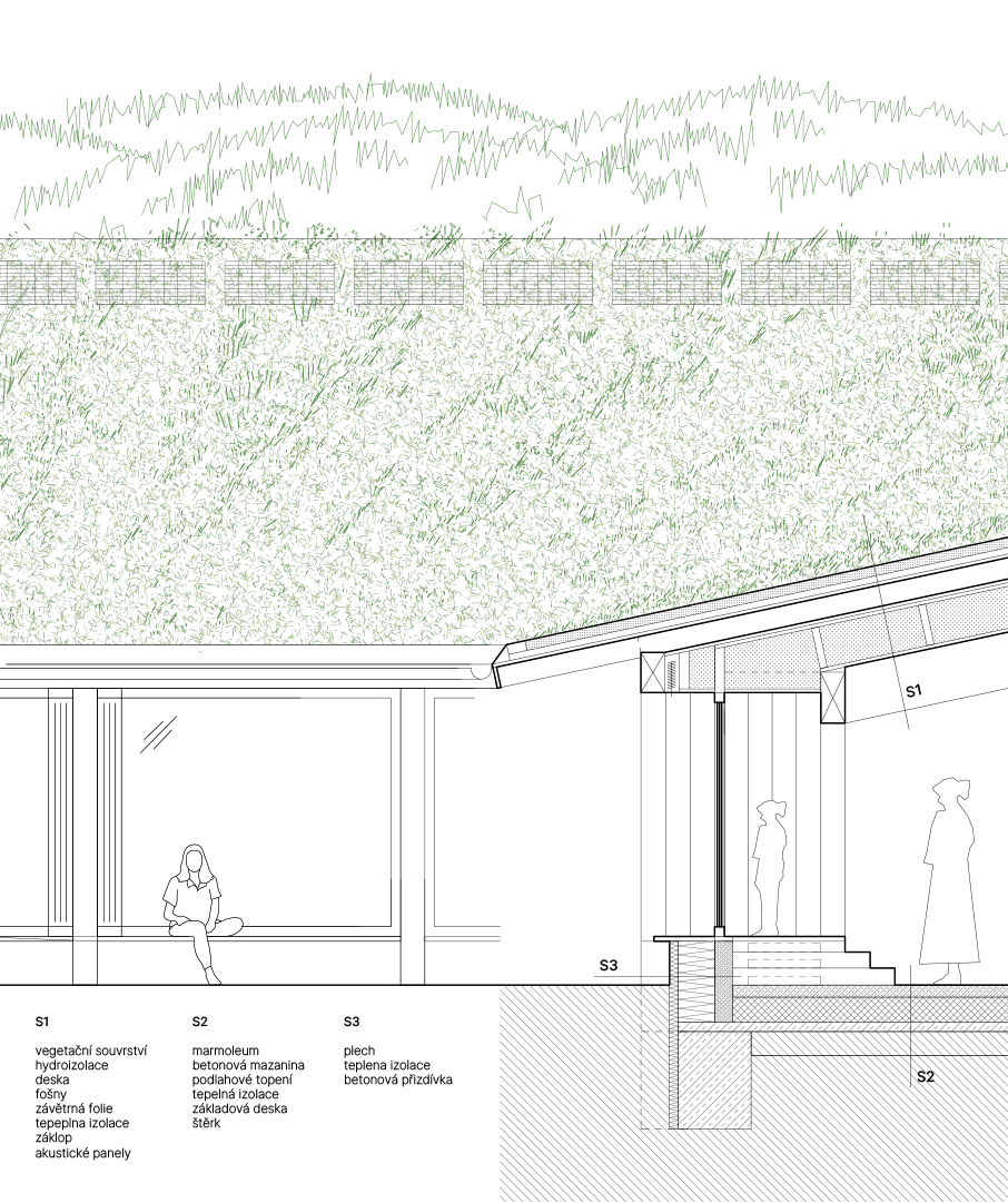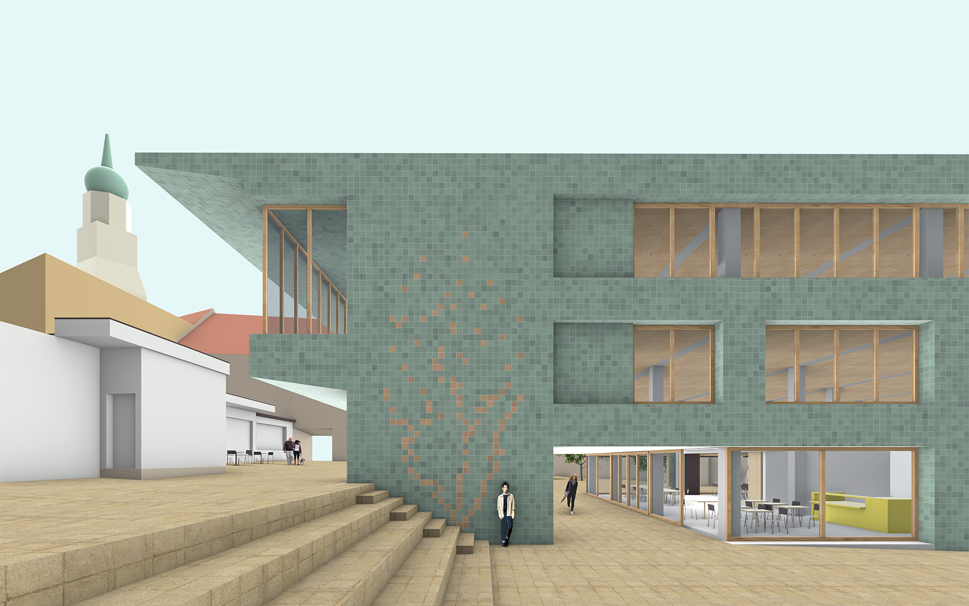 Dům, který je celý mým domovem. Jakou obecnější ambici by měl mít starobinec? Čemu se ale podobá domov více než šedesáti lidských bytostí. Klíčem je analogizovat důvěrně známé součásti domova. Přenést ideu předsíně, pokoje, obýváku… Dbát na zachování jejich smyslu, jejich vzájemných vztahů. Reinterpretovat fenomén hloubky domova a vyvážit tak pocit bezpečí a kontakt s vnějškem.