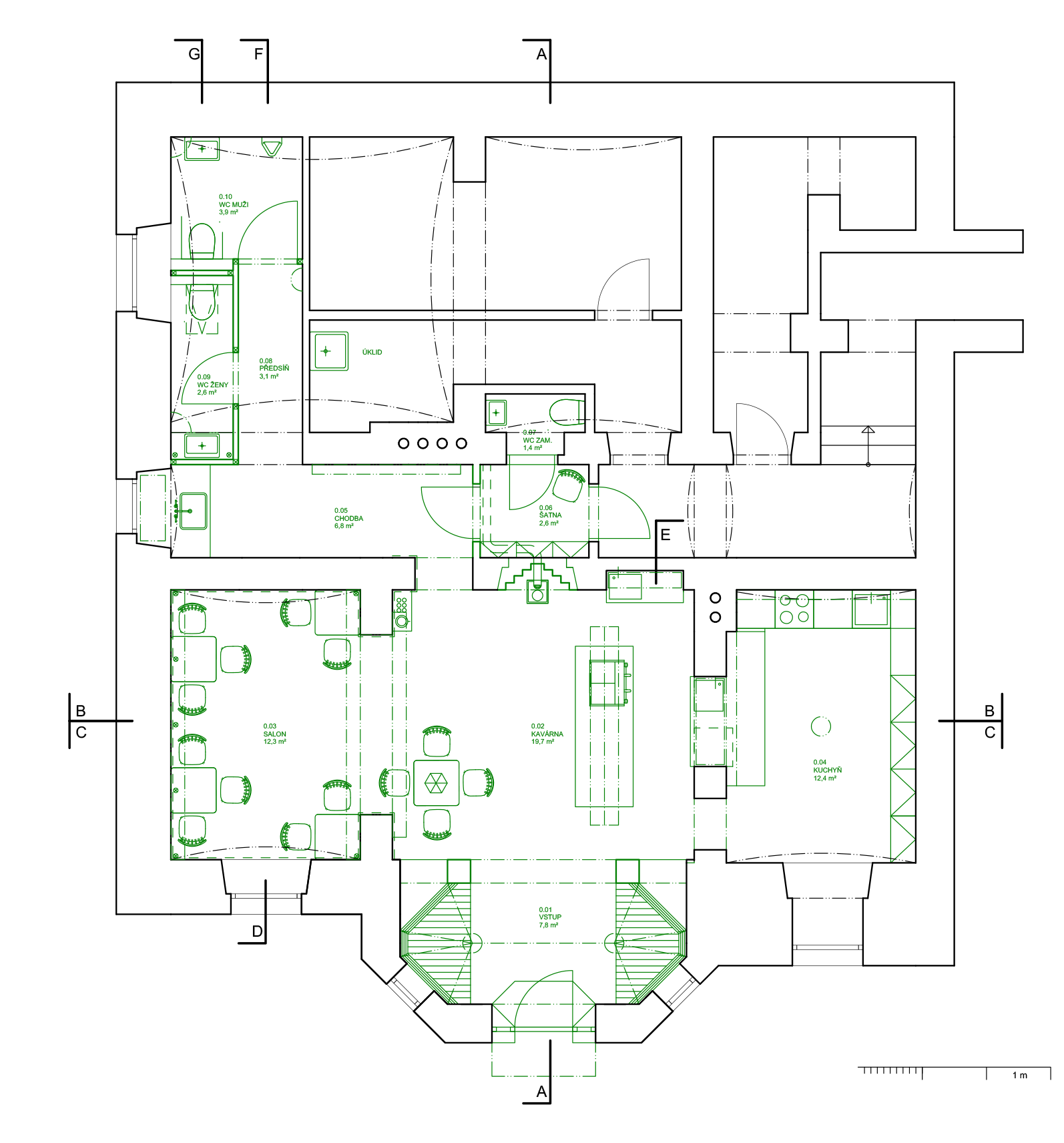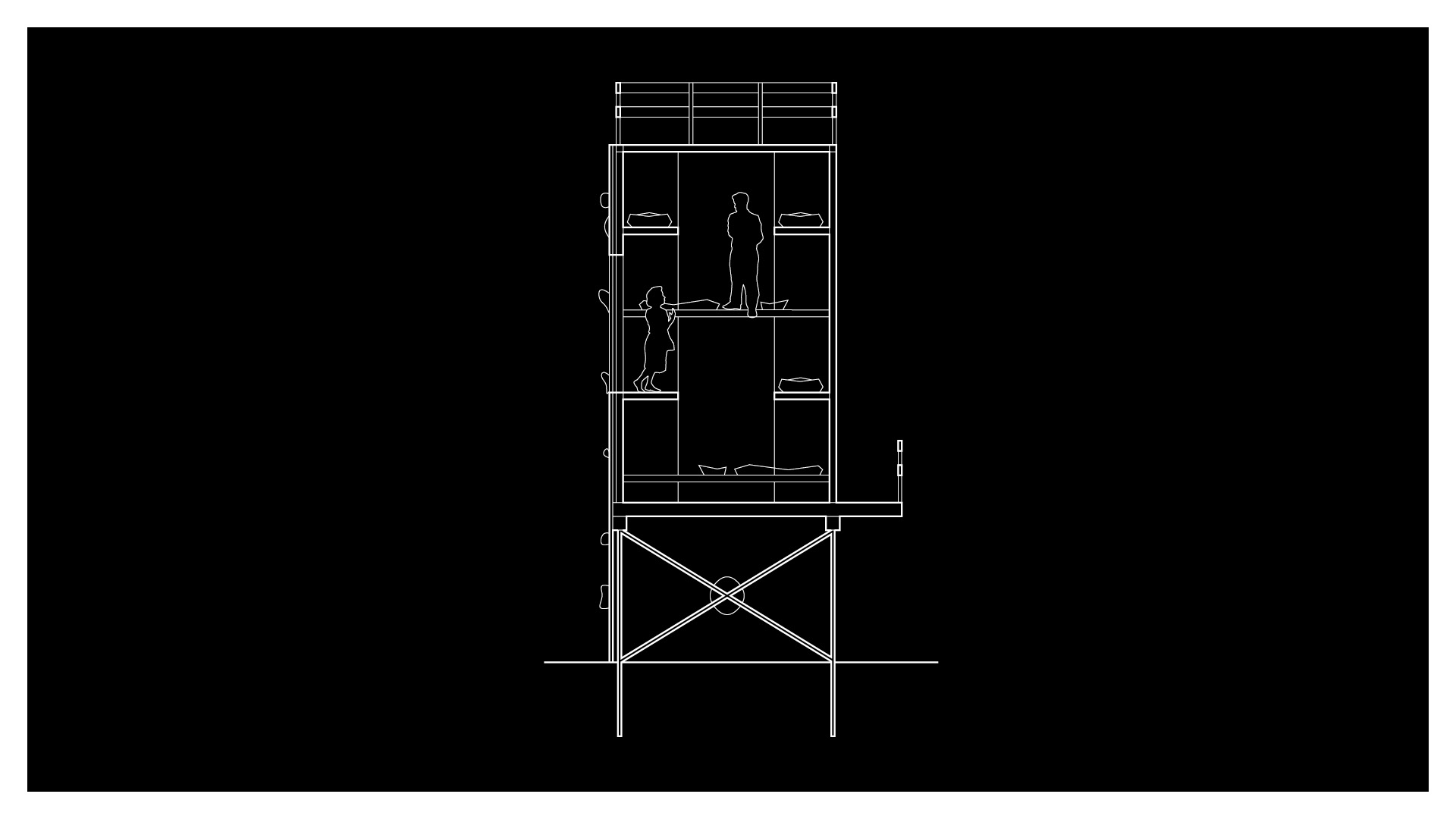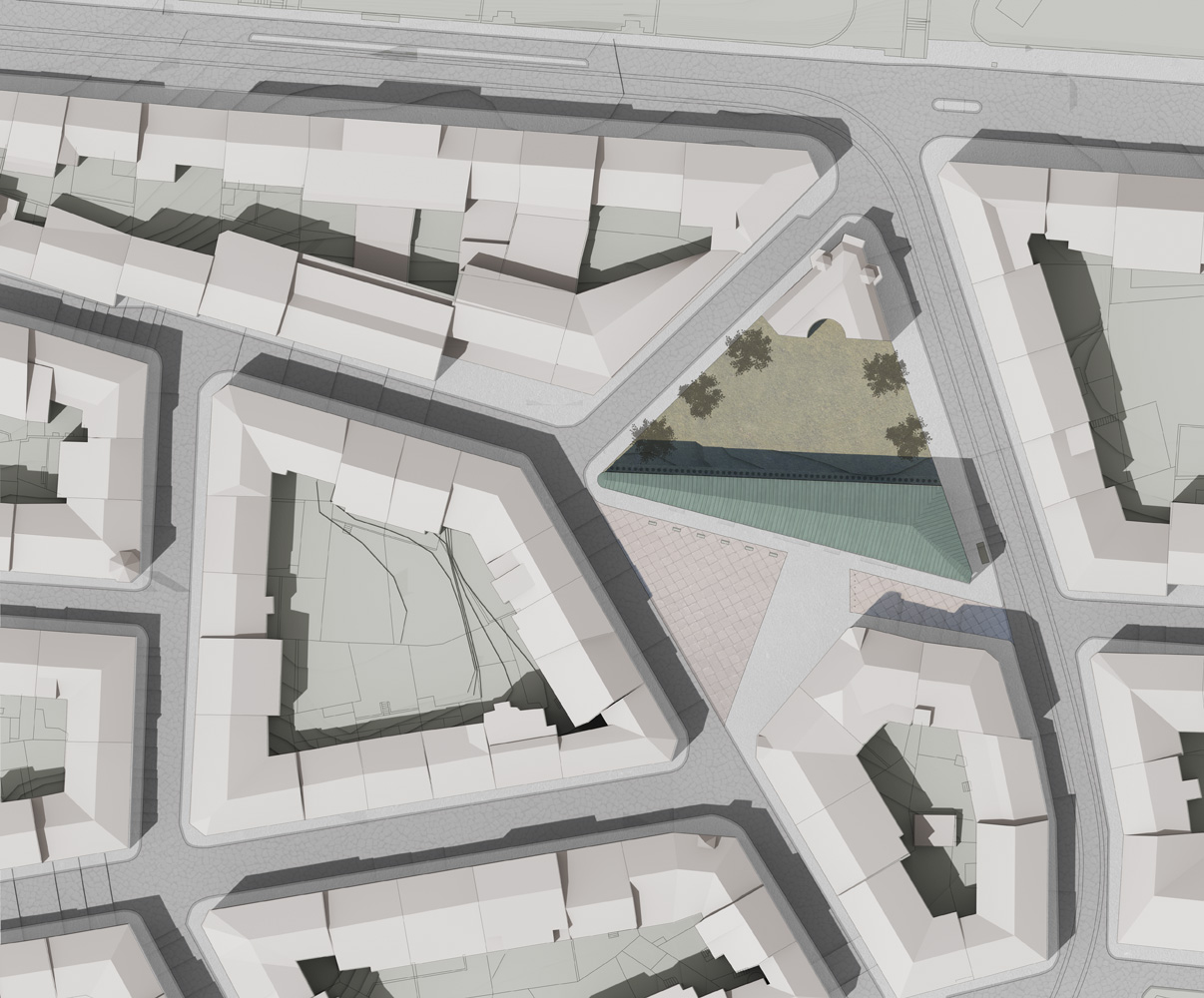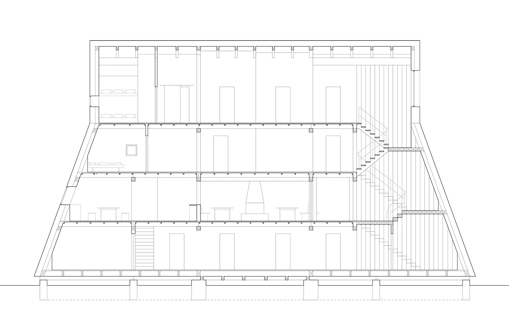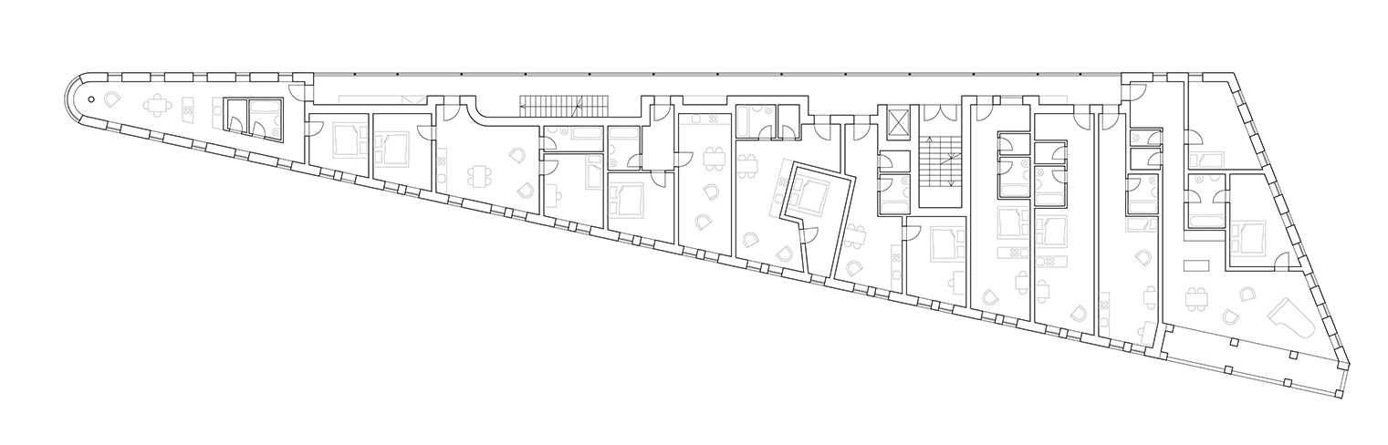Dům, který je celý mým domovem. Jakou obecnější ambici by měl mít starobinec? Čemu se ale podobá domov více než šedesáti lidských bytostí. Klíčem je analogizovat důvěrně známé součásti domova. Přenést ideu předsíně, pokoje, obýváku… Dbát na zachování jejich smyslu, jejich vzájemných vztahů. Reinterpretovat fenomén hloubky domova a vyvážit tak pocit bezpečí a kontakt s vnějškem.