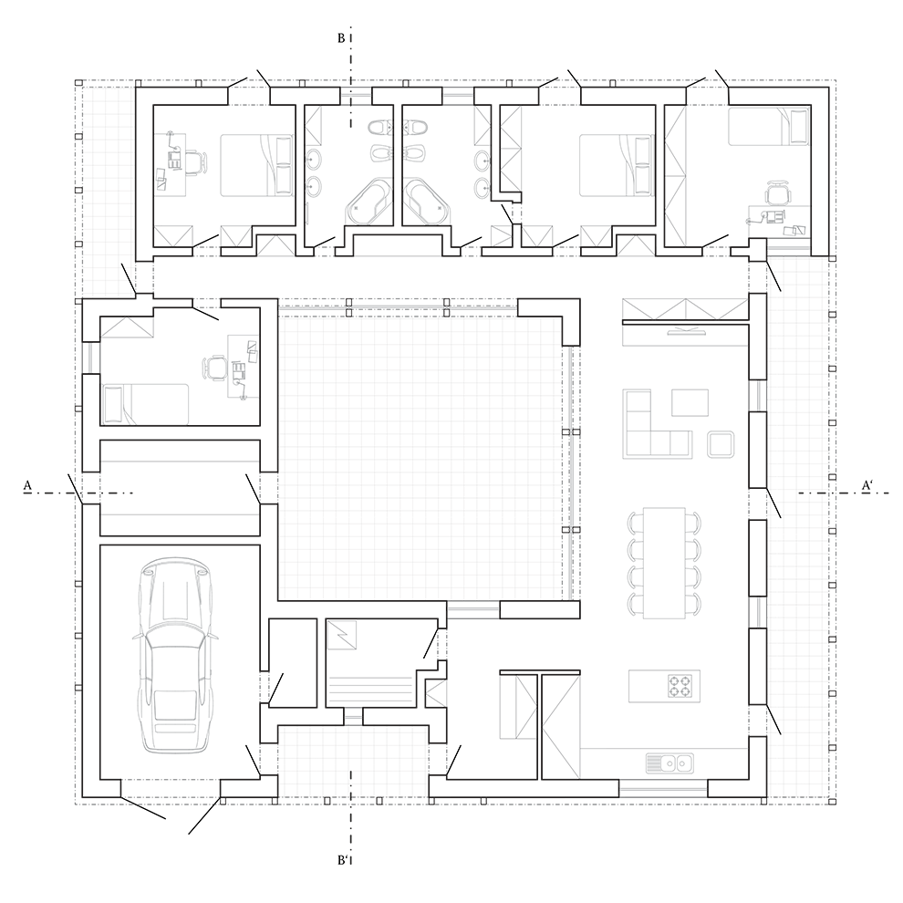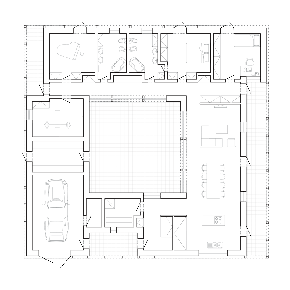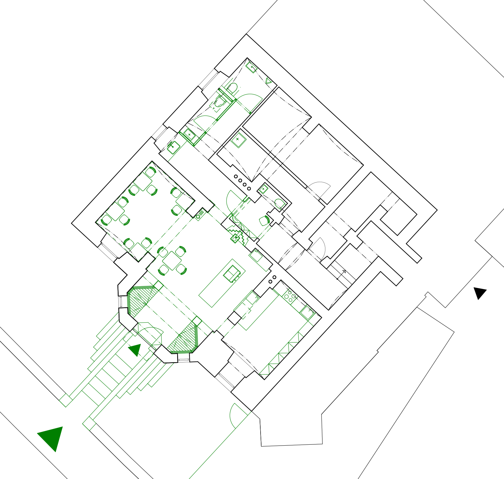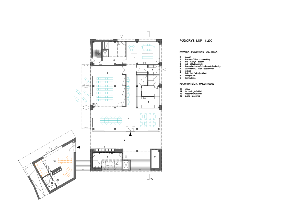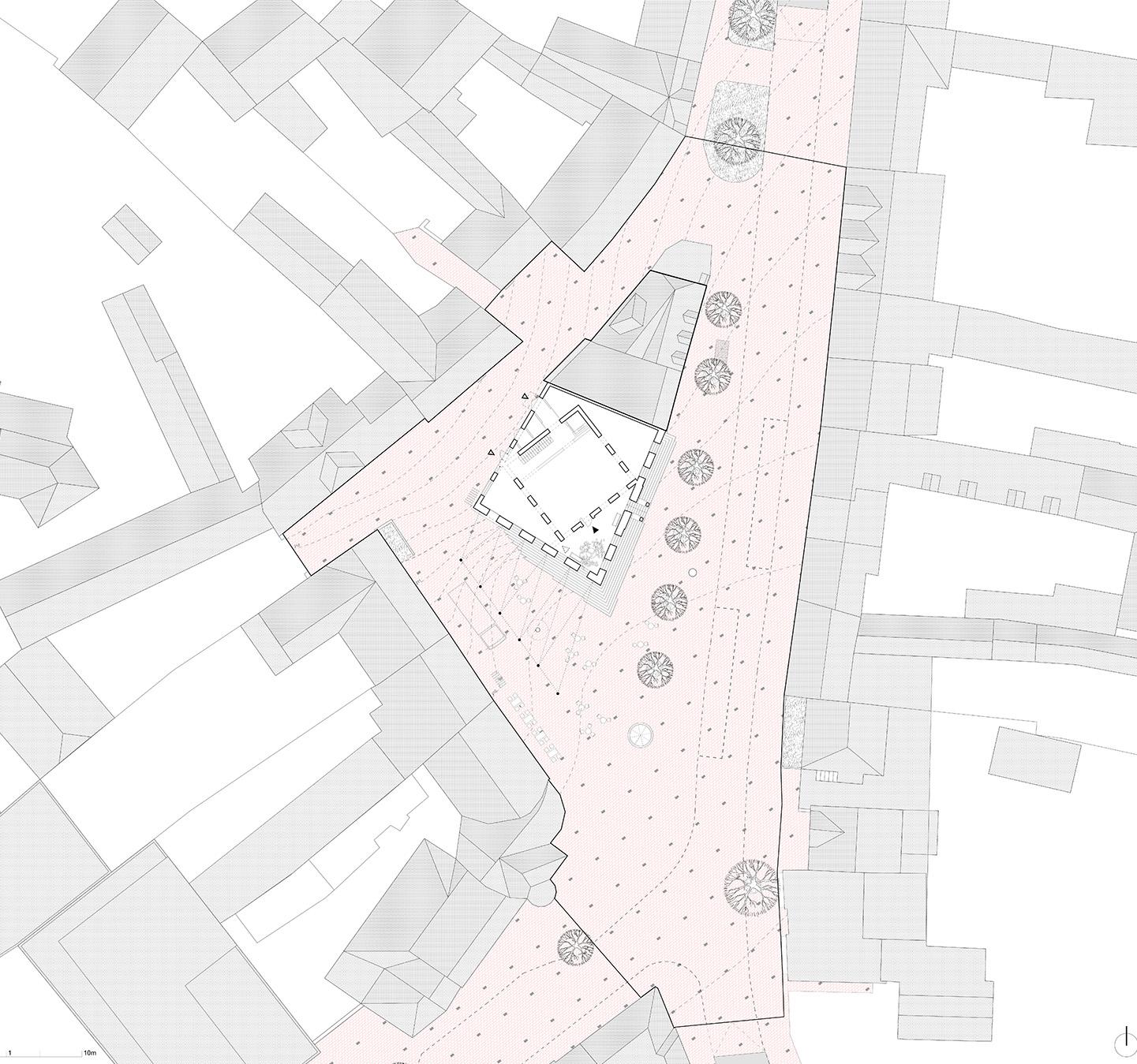 Dům, který je celý mým domovem. Jakou obecnější ambici by měl mít starobinec? Čemu se ale podobá domov více než šedesáti lidských bytostí. Klíčem je analogizovat důvěrně známé součásti domova. Přenést ideu předsíně, pokoje, obýváku… Dbát na zachování jejich smyslu, jejich vzájemných vztahů. Reinterpretovat fenomén hloubky domova a vyvážit tak pocit bezpečí a kontakt s vnějškem.